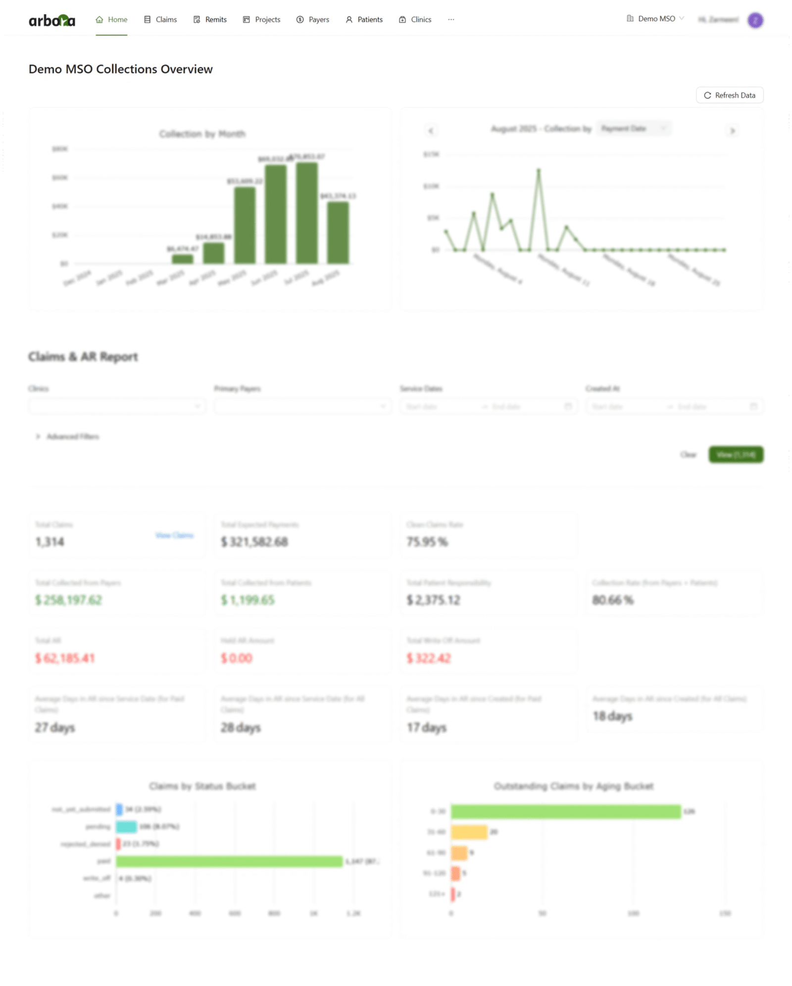 Access real-time dashboards with metrics like AR days, collection rates, and payer trends — helping you make smarter, faster decisions.